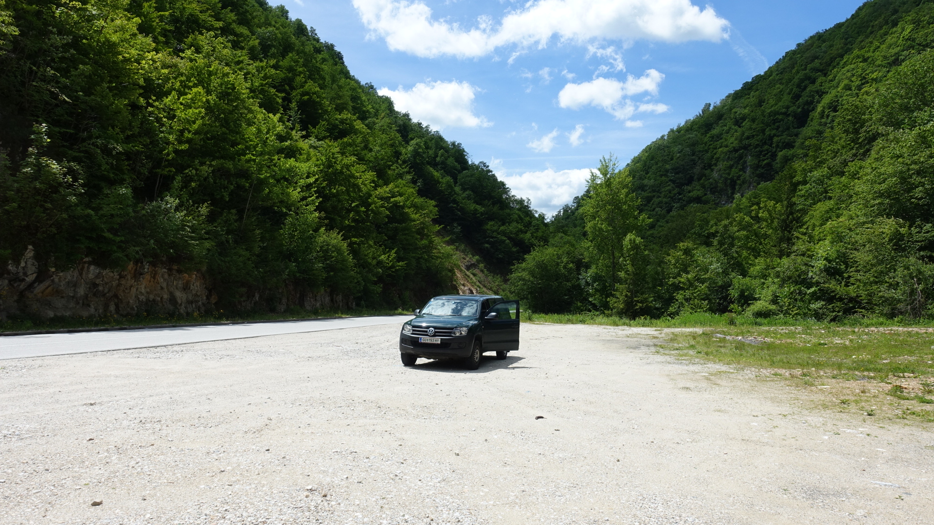augewacht mit einem brutalen kopfwehkater auf weniger als drei stunden schlaf, ins auto gestiegen voller morivation und bis karlovac mehe oder weniger durchgehend knocked out. bis auf den besuch beim mci, wo bei unserer bestellung jedes einzelne stück falsch belegt war, pommes dabei waren die wir nicht bestellt hatten und ser mctoast aus zwei verkehrten burgerbuns bestanden hah die verkehrt aufeinander lagen, getrennt von einer geschmolzenen käseschicht. hat gut erheitert. dann ab karlovac im recherchier und gegemdschaumodus gewesen. schöne gegenden, anfangs etwa die nahe bei den plotvicer seen rund um slonji, in der wir kurz halt gemacht haben um die mühlen und wasserfälle anzusehen. weiter gings durch grüne wälder mit kalkigen einschlägen (dolinen, recht tiefe schluchten) und anschließend ein breiter werdendes tal das über die grenze kroatien - bosnien nach bihac führt. zur rechten im begrenzenden bergmassiv konnte man die ehemalige luftwaffenbasis zeljava sehen, die größte im jugoslawischen staat, mit unterirdischen hangars und bunkern, die extem weitläufig, aber teils vermint sind. ein besuch wird wohl fürs nächste mal aufgespart werden müssen, es klingt aber wahnsinnig spannend. in bihac die stadt besichtigt, eigentlich ein sehr netter ort mit lebenswert wirkendem stadtkern, viel natur dank der surchfließenden una, die dort auch wahnsinnig schön blau und grün ist, und spannende geschichte mit den drei belagerungen, der festung, und der früher gotischen kirche die eine moschee wurde. kaffee getrunken in einem cafe voll mit jungen locals, generell hat alles sehr lebendig gewirkt. auch wenn der kellener eher schläfrig war, zumindest uns gegenüber. dann burek gekauft und weiter richtung strbaki buk, auf offroad strecke die man sich allerdings erst für 6 euro pp erkaufen muss. und auch entgegen der karten nur one way, da ein teil gerade asphaltiert wird, dort aber wieder herrliche grüne natur, und schöne wasserfälle, direkt an der grenze zu kroatien. wetter dauerhafte abwechslung aus regen, der allerdings nie dramatisch war, und sonne, aber insgesamt eine gute kulisse für den tag. dann gings nach einem kleinen spaziergang am wasser wieder hinaus auf die strasse richtung jajce, wo wir wirklich herrliche, weite, grüne landschaften mit kaum besiedelung gefunden haben, die direkt lust auf zum einen offroad abenteuer, und zum anderen entspanntes zelten oder ähnliches machten.