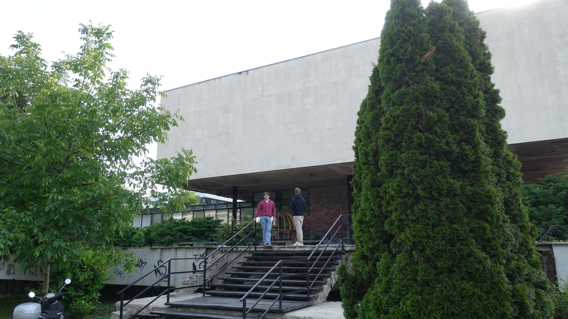 Der samstag begann mit frühem aufwachen aus sehr leichtem schlaf, vermutlich vom alkohol der nacht davor. Die anderen waren um diese uhrzeit, 6:40, noch im tiefschlaf oder beim zwischentlichen klogang. Da ich wusste dass einschlafen nichts mehr wird und ich auch nicht herumliegen wollte hab ich mich in schale geworfen und bin aus dem haus zuerst in die Baščaršija, noch fast gänzlich menschenleer, bis auf einen netten mann der seinen hund spazieren führte. mein ziel war mir nicht gänzlich klar und so zog ich einmal in richtung der hügel rauf. vielleicht in richtung von adnans teehaus und den stiegen bei der vatikanischen nuntiatur? oder vielleicht doch aufs andere flussufer? Ich entschied mich für die wohngegend die sich da an den sonnenhängen der stari grad bis weit in die umliegenden hügel entlangzieht, mit einfamilienhäusern und herrlichem grün, durchsät von kleinen moscheen und deren minaretten. adelheid hat uns dann später erzählt dass diese das zentrum ihrer jeweiligen mahala sind, soetwas wie kleine stadtteile, mit geschäften und sozialen gemeinschaften. Sie sollen aber laut adeheid auch als identifikation innerhalb der stadtgesellschaft dienen, besonders für die etwas traditionelleren, konservativeren muslimen in eben jenem wohngegenden auf den hügeln östlich der Baščaršija. Naja ich bin eben eher richtung norden marschiert, zuerst eher planlos aber irgendwann kam dann die idee dann gleich auf den hügelspitzen zu stehen die man von unten sieht, spezifisch bei den funkmasten die dort oben platziert sind, am hügel 105. also bin ich immer zügiger glaufen, es is auch gut steil geworden, und am ende sogar noch zu einer netten wanderung eigentlich, plötzlich gings auf einen wanderweg durch fast schon subalpine bewaldung, dabei war ich doch nur eine halbe stunde marsch von der stadt entfernt. netter spaziergang, die aussicht wurde auch immer besser. hier und da waren auch geschichtliche spuren zu sehen, etwa sandsäcke, vermutlich von stellungen aus der schlacht? dann war ixh eh schon fast bei meinen masten, und dort hab ich mich dann hingesetzt um mein reisebericht vom tag zuvor zu verfassen. ich war zwar leicht besorgt um die zeit da ich eigentlich um 8, zur ausgemachvten aufstehzeit wieder da sein wollte und es schon fast 7:40 war, aber ich hab mich trotzdem niedergesetzt und bei herrlicher aussicht ä, sonnenbeschienen und völlig allein da kurz zu schreiben. und dann musste ich eh schon wieder hinunterlaufen, aber um 8:50 war ich nach leichten problemen mit der codegesicherten eingangstüre wieder in der unterkunft. die anderen waren eh gerade erst aufgestanden, so konnte ich auch gemütlich noch meine morgenroutine angehen. Dann waren wir zum frühstüc im proporod, wo wir vor zwei jahren schon waren, und der kellner von damals war auch noch immer da. das essen war ganz gut, und das sitzen sehr gemütlich, sodass wir uns erst nach einiger zeit zum losgehen in richtung wartime childhood museum aufraffen konnten. aber es hat sich gelohnt, denn dort gab es eine sehr emotionale, aber nicht erdrückende, sondern fast hoffnung-spendende sammlung an objekten aus kindheiten des bosnienkriegs. schaukeln die nie an ihrem designierten platz hängen konnten, turnstangen die von einer granate geteilt waren, aber etwa auch ein transistorradio der die nachbarschaft mit der aussenwelt verband. und als transnationaler kontext, ähnlich wie am tag davor im museum, auch jeweils drei ähnliche objekte aus der ukraine und gaza. Eindrucksvoll und bedrückend, aber nicht überwältigend, sondern genau in der richtigen dosis, sehr empfehlenswert!