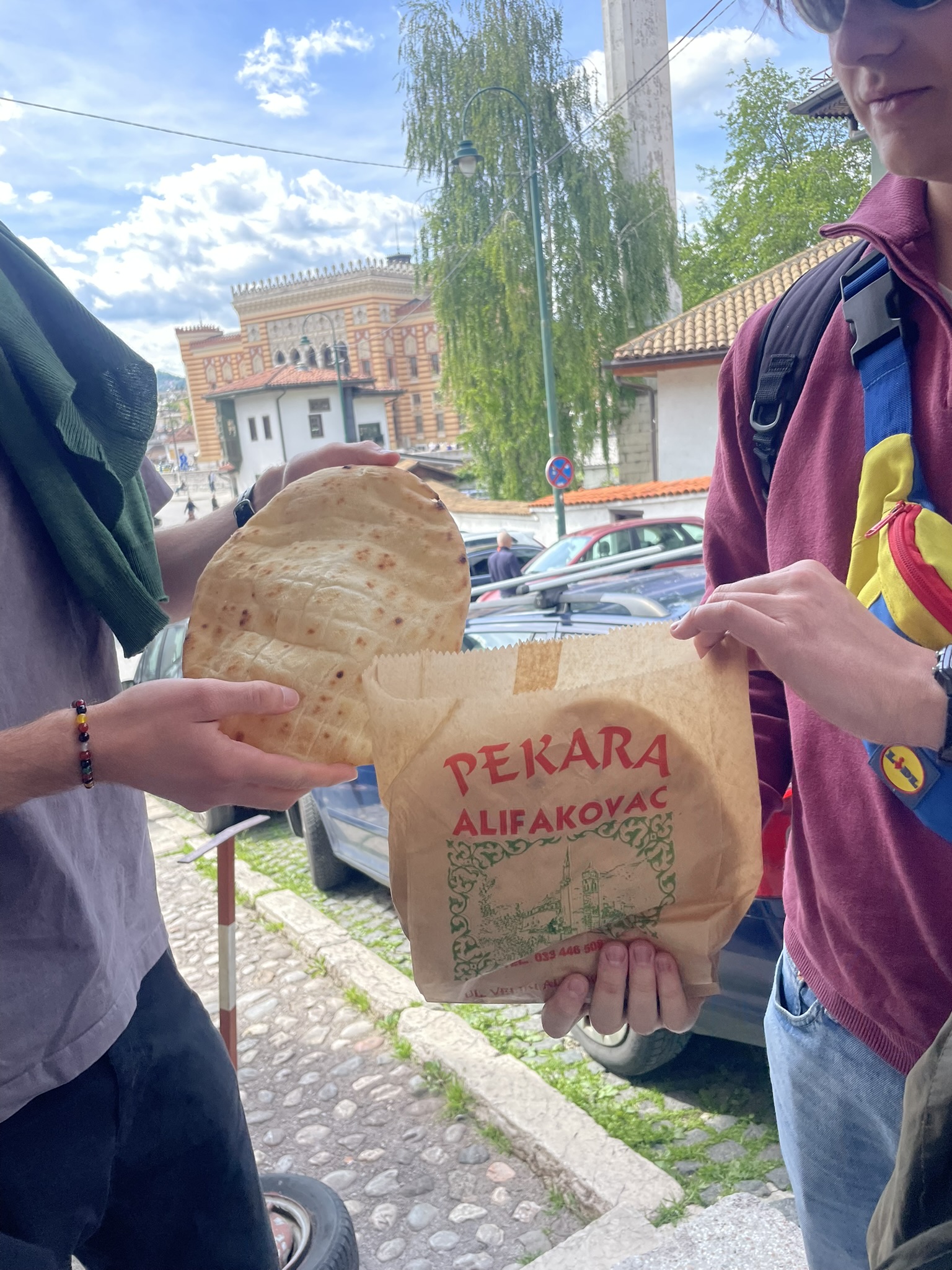 Nachdem wir dort einen süssen Streuner fast eingepackt hätten hat uns adelheid in ein lokal über sarajevo geführt, mit mehr als herrlichem blick, schönem grün, und gutem, bodenständigen essen. Dann ging die Fragerunde dort oben munter weiter, mit so viele spannenden Themen. Von ihren Recherchen in der Türkei und den Repressalien dabei, von Sarajevo in der Coronazeit und den Wildpferden die bis auf den Hauptplatz der damals ausgestorbenen Stadt vordrangen. Von der Popmusik in bosnien (empfehlung: dubiosa kollektiv), von der klubszene der stadt, der sozialen aufteilung in der stadt und wo denn die hipster sind bis hin zu adelheids wanderungen.